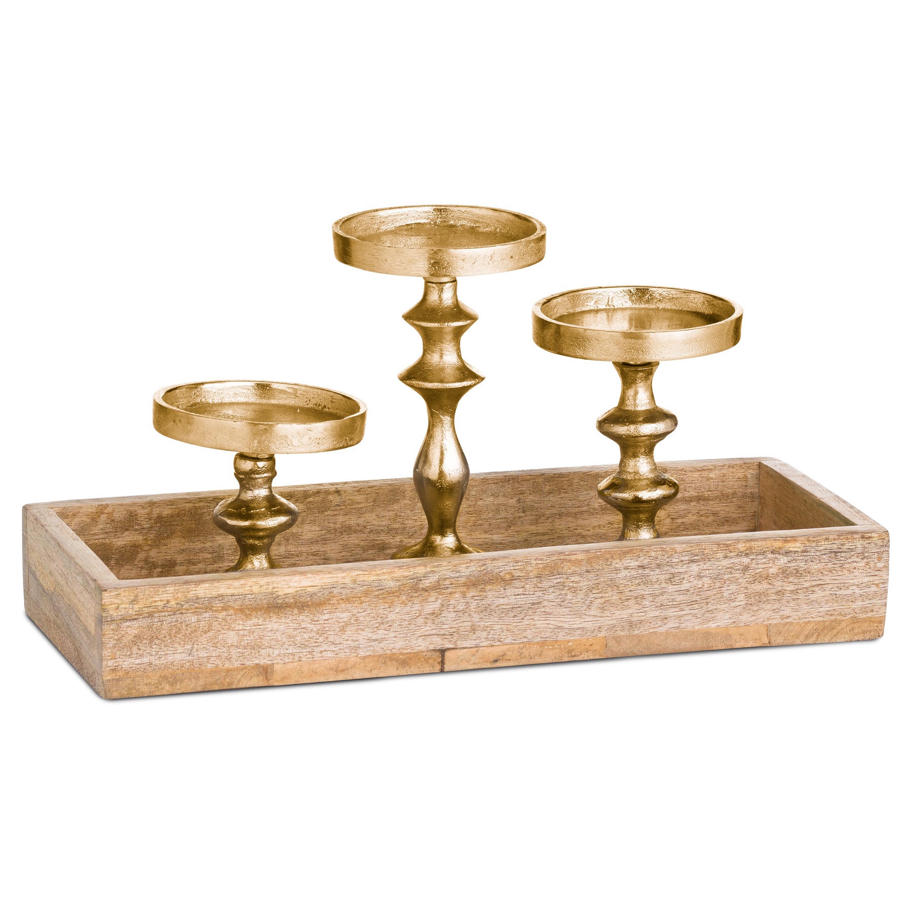 This Hardwood Display Tray With Four Candle Holders is a handy way of adding a candlelit glow to wherever you’re relaxing. This easily transported item gives you the option to take a candlelit atmosphere with you as you use your favourite relaxation spots around your home. And its combination of materials provides the added texture so in demand today. See 20318 for our larger, four candle, version of this item.