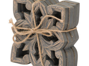 This is the Harmen Set of 4 Antique Metallic Coasters. Ornately hand-carved by highly skilled Indian artisans, these pieces have a classic pattern to them that will appeal to those buying not only for themselves but also for family and friends, as gifts. A great piece of craftmanship in an antique metallic colour that will complement a wide variety of decor schemes. Be sure to check out our selection of wall mirrors in the same style and finish.