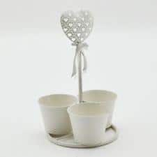 Hearts Plant Pot Stand Freestanding Garden Triple Planter Outdoor Cream 37cm