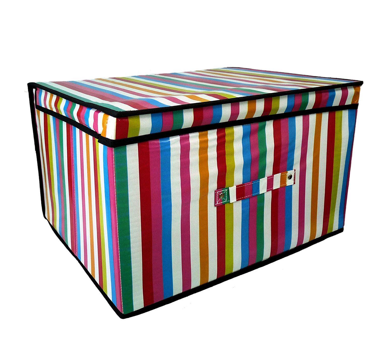High Quality Folding Multicoloured Stripes Kids Room Tidy Toy Storage Box with Lid