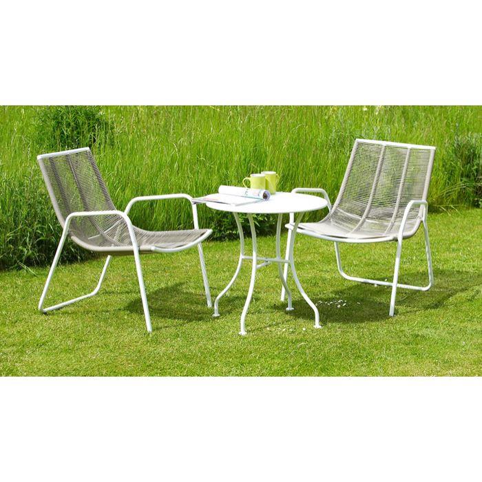 Ideal for smaller gardens, patios and balconies, this set includes a stylish round table and 2x comfortable, stackable chairs.