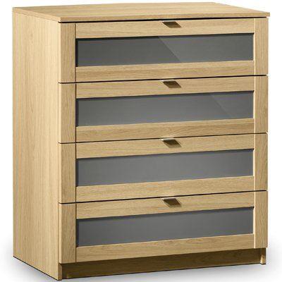 Julian Bowen Strada 4 Drawer Bedroom Chest In Light Oak With Gloss Insert