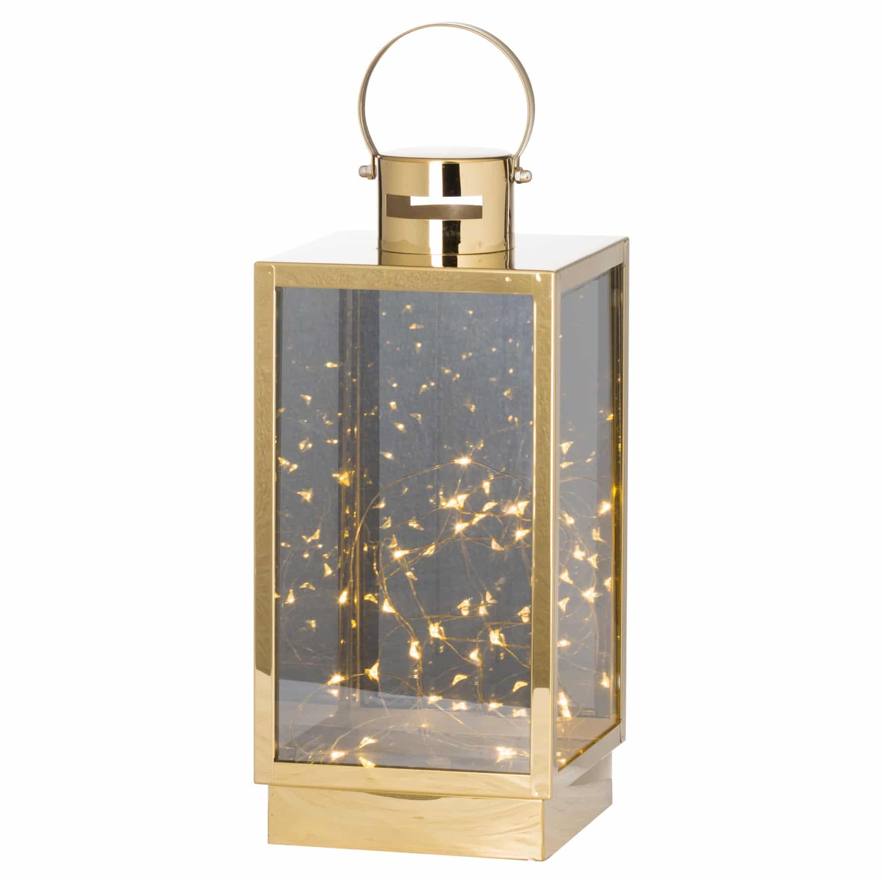Add sparkle to any interior with the Large Brass Lantern, it features beautiful micro lights inside which create a captivating look when switched on. It has been complemented with a stylish brass metallic finish and handle too. Be sure to take a look at the smaller version, 20001.