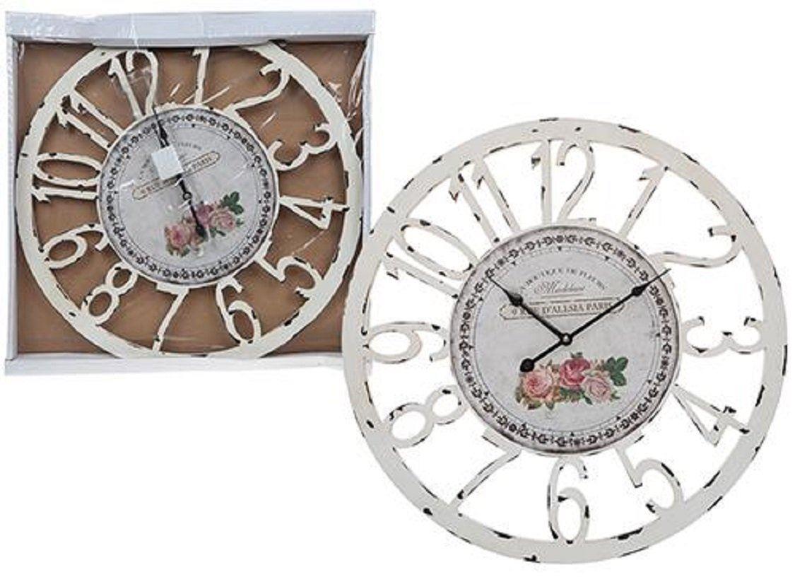 This large decorative MDF wall clock with floral decoration and a shabby antique french look makes a great addition to any home.