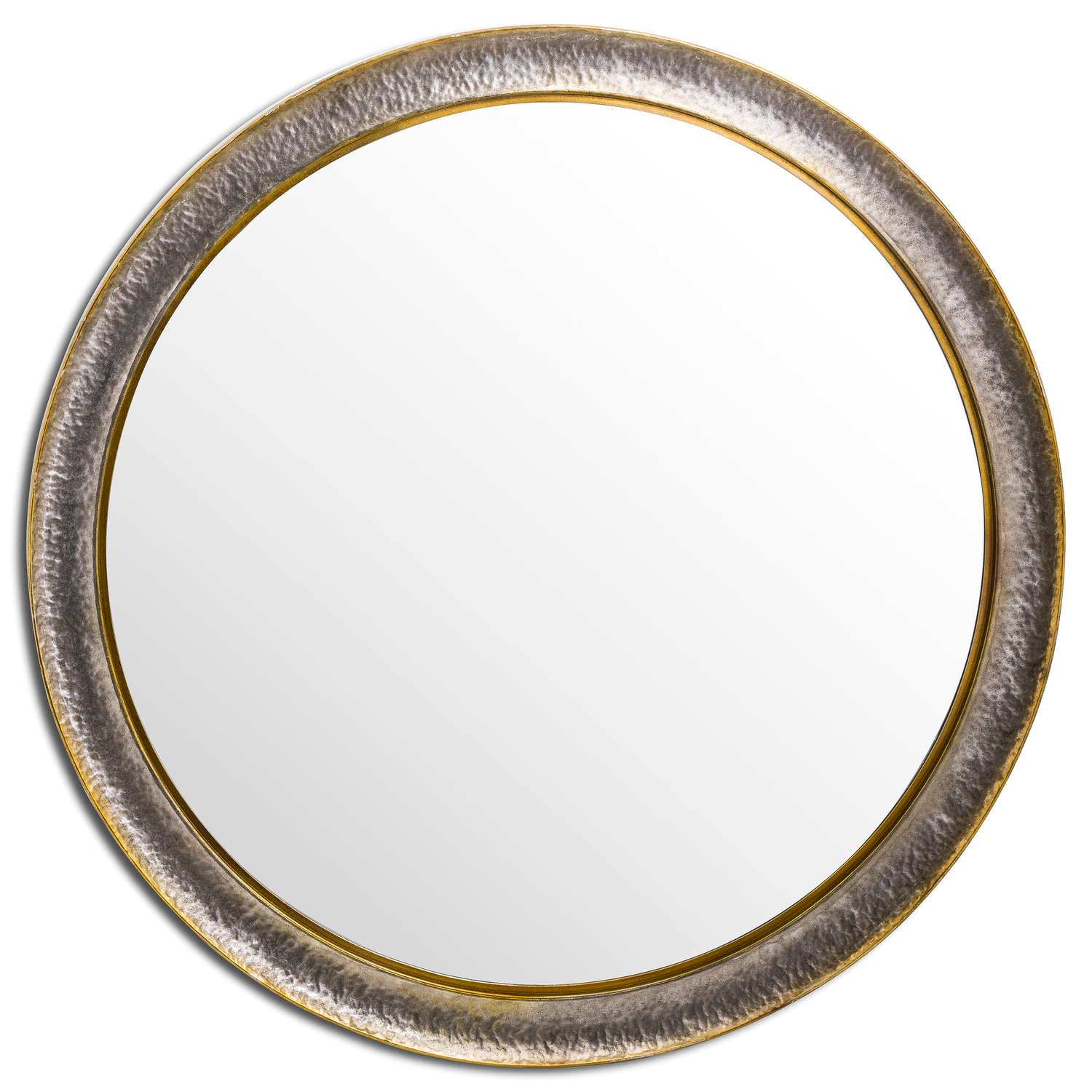 The Large Hammered Circular Wall Mirror is sure to provide a sizeable and eye-catching statement piece in any space. This item’s curved metal frame has a brass finish at its edges which contrasts perfectly with its silver hammered metal interior. A great feature on an empty wall space which would provide an easy way for customers to tie together a fashionable mixed metal d?cor scheme.