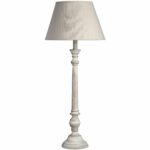 A lime-washed wooden table lamp of elegant proportions. This shaker-style piece, topped with a linen shade, would look at home in a variety of interiors both minimalist and country-chic.