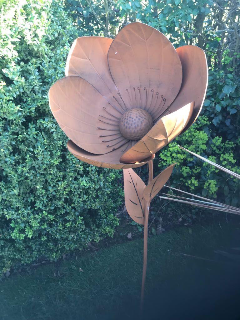 Medium sized metal garden flower on stake to easily put in the ground.