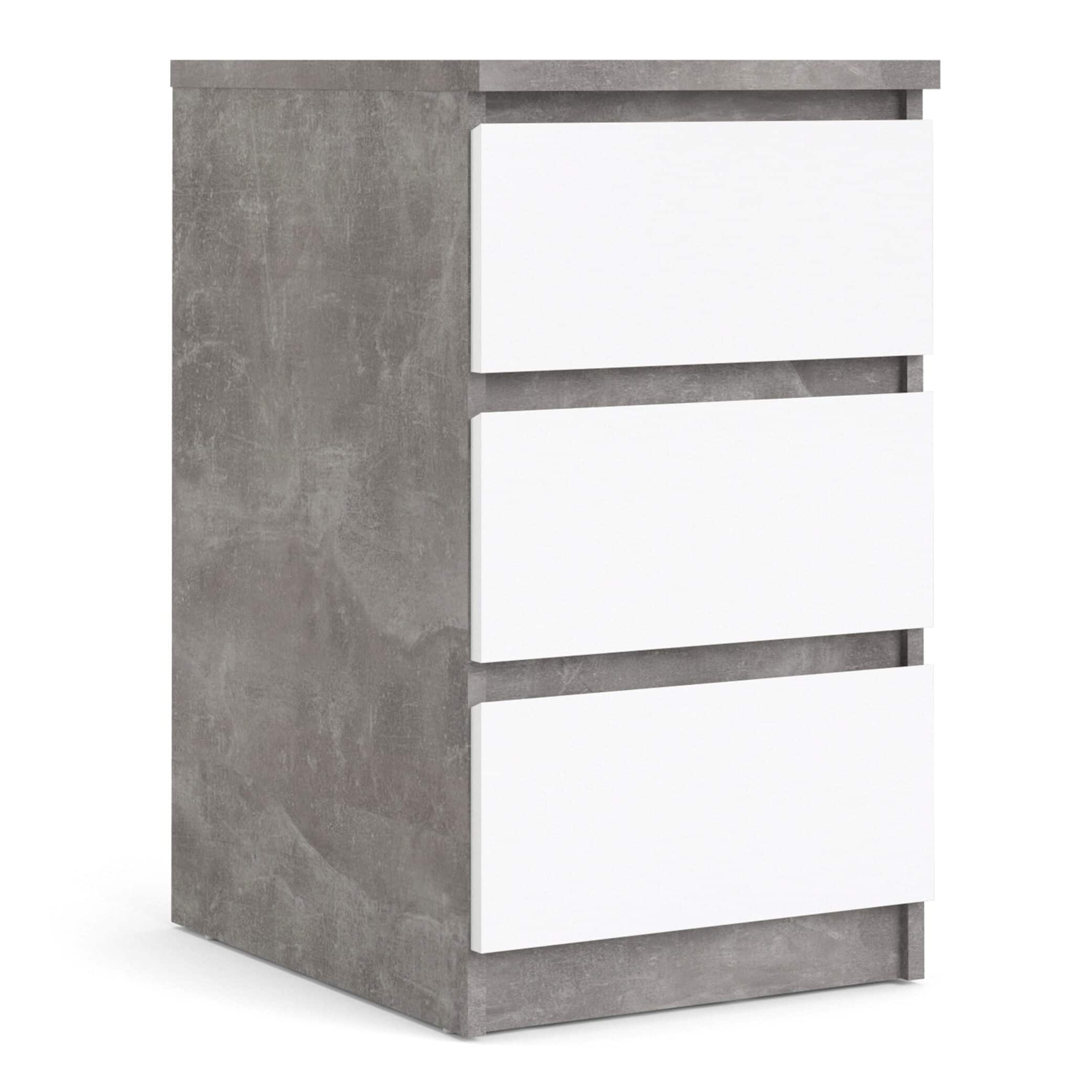 Naia Bedside – 3 Drawers in Concrete and White High Gloss