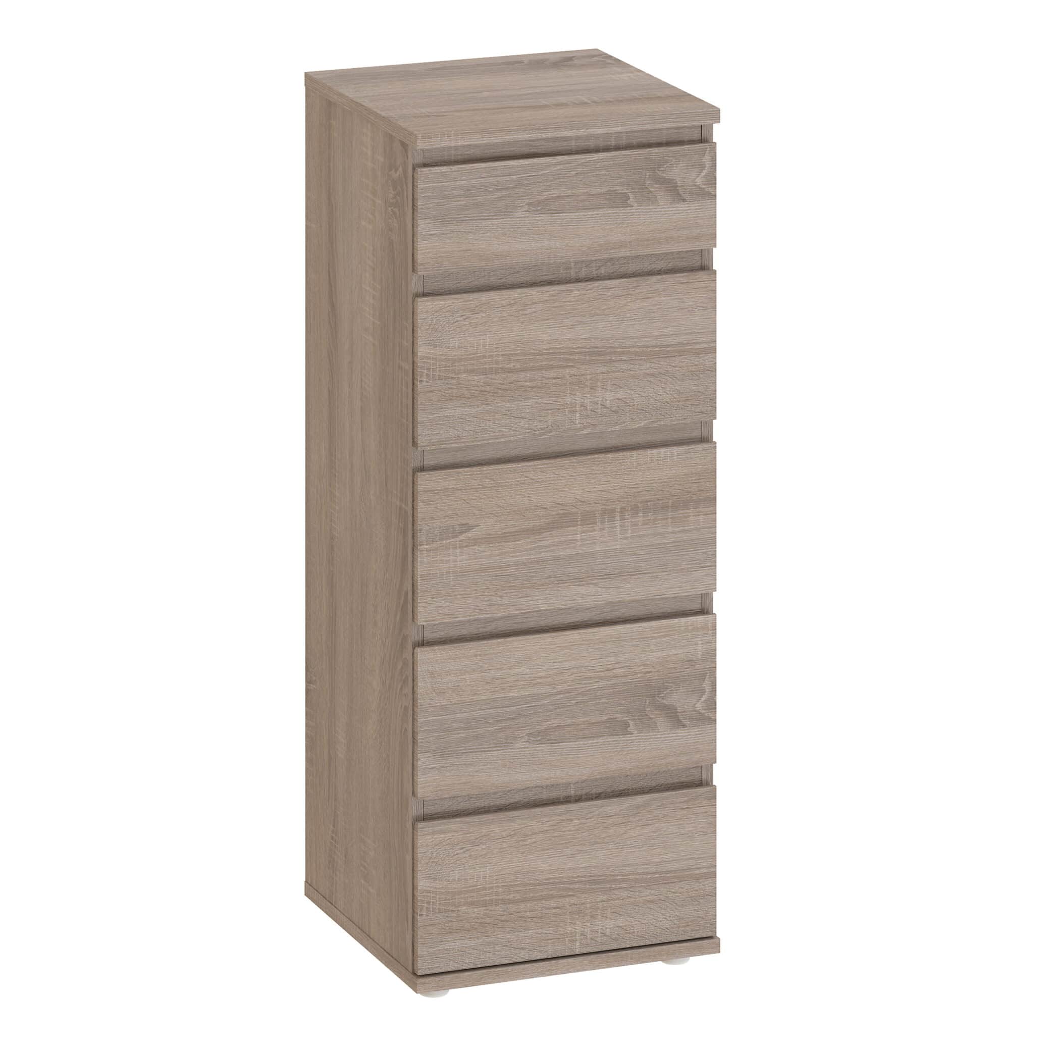 Narrow Chest of 5 Drawers in Truffle Oak