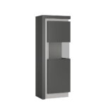 Narrow display cabinet (RHD) 164,1cm high (including LED lighting) in Riviera Oak/White High Gloss. Space saving narrow 164cm high display cabinet (right hand door opening) has smoky glazed area to display family treasures. Includes concealed lighting arrangement. A high quality collection in a ultra modern design – with each item complementing each other.