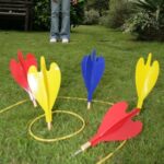 The high quality garden darts have weighted tips which allow them to fly across the garden and land in the lawn.