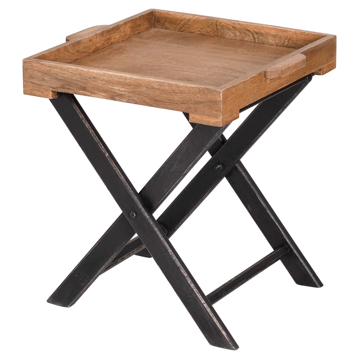 This is the Nordic Collection Medium Butler Table. Built from hard-wearing mango wood, this scandi-inspired console table’s wooden tray handled top and hand brushed black painted legs give a real softness to its overall aesthetic. Part of a capsule collection comprising a number of versatile options for living and dining spaces, this versatile folding butler table has an easy-going minimalism to it that customers will love.