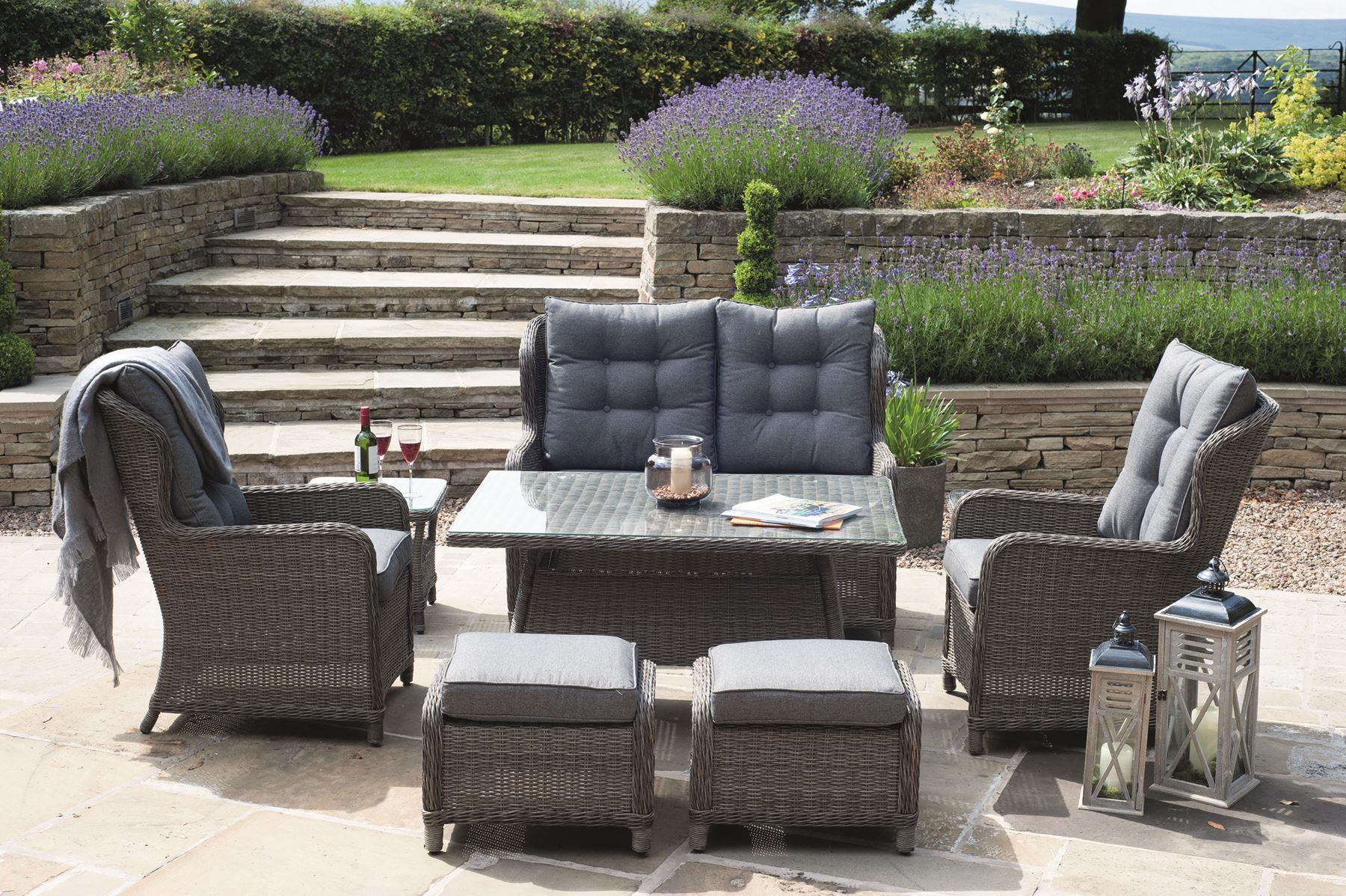 A classic relaxed outdoor dining solution, the St Kitts includes a comfortable 2 seater sofa, 2 chairs & 2 footstools, all with luxurious showerproof cushions. This set mixes classic design and contemporary style, providing the opportunity to comfortably dine & relax. The rectangle table comes with a tempered glass top for extra safety. We do recommend covering when not in use.