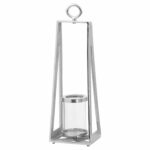 This is the Ohlson Silver Large Pyramid Tea Light Holder. Hand cast in aluminum, the casting process has given these premium quality items a pitted, textured appearance which adds to their characterful design. Filled with one of our real wax LED tea light candles (sold separately) these items will add atmosphere and interest to a variety of interiors with their contemporary, geometric shape. Be sure to see the matching smaller version, 20656.