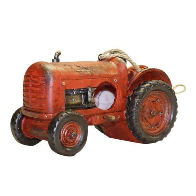 Red Tractor Bird Nesting House Polyresin Vintage Tractor Garden Farming Gift