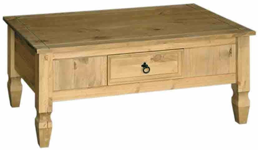 This coffee table is made from pine and plywood and has a wax effect finish. It belongs to the Santa Fe range of high quality antique waxed pine dining & occasional furniture with real dovetail drawers which we sell at the best possible price. This item requires some assembly and includes all necessary tools. Dimensions: 1070w x 538d x 456h.