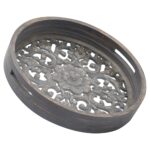 These are the Carved Grey Wash Trays. Ornately hand-carved by highly skilled Indian artisans, these pieces have a botanic pattern to them that will appeal to those buying not only for themselves but also for family and friends, as gifts. Great items in a grey wash colour that will complement a wide variety of decor schemes. Be sure to check out our selection of coasters and wall mirrors in the same finish.
