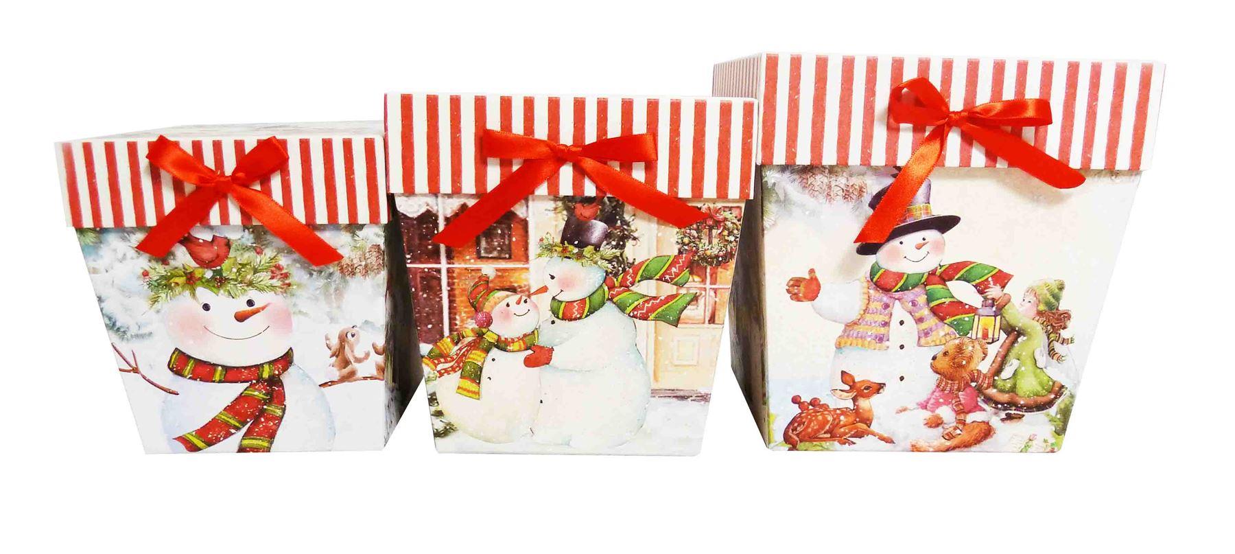 Set Of 3 Christmas Snowman Square Gift Boxes 15.5cm 17.5cm 19cm