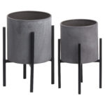This is the Set of Two Cylindrical Table Top Planters. A unique planter in an on-trend concrete finish which is sure to bring an element industrial luxe into any interior. Finish with a beautiful bundle of greenery to create a contemporary design statement. Built in a table top size, these planters will be suitable in a variety of spaces.