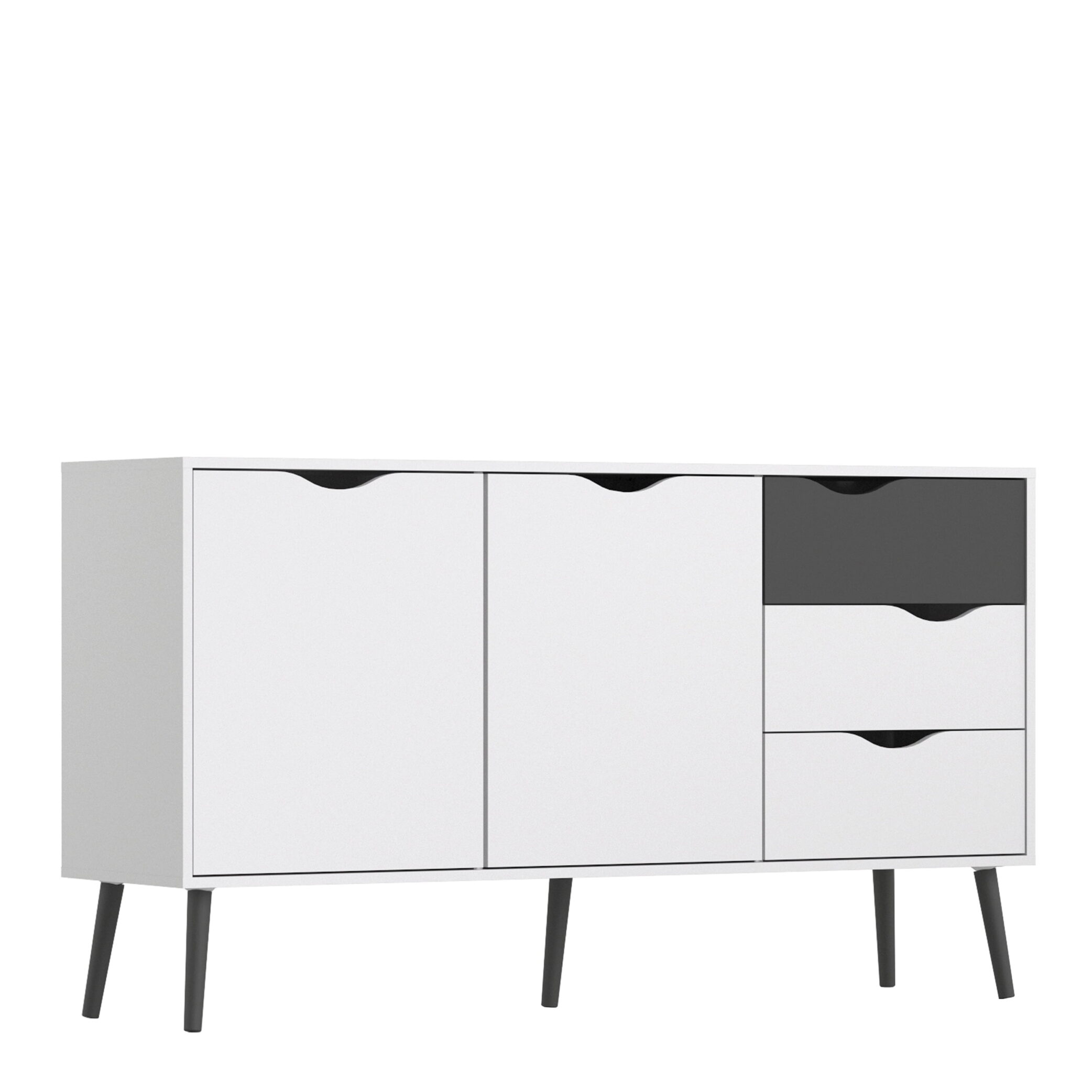 Sideboard – Large – 3 Drawers 2 Doors in White and Black Matt