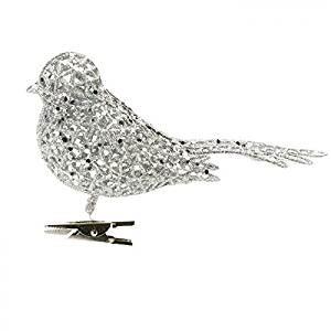 Silver Colour Glitter Bird with Clip Christmas Tree Decoration 15cm