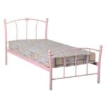SINGLE BED FRAME PINK CAITLIN – This metal single bed frame Caitlin is ideal for any girls bedroom, having a curved head and footboard featuring a pink heart design.