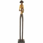 A sitting jazz man, playing the trumpet. Part of the ‘Sitting Jazz Band’ collection. He has a plat surface, with one hanging leg so it can sit on the edge of a surface. This item is suitable for display as an orenament.