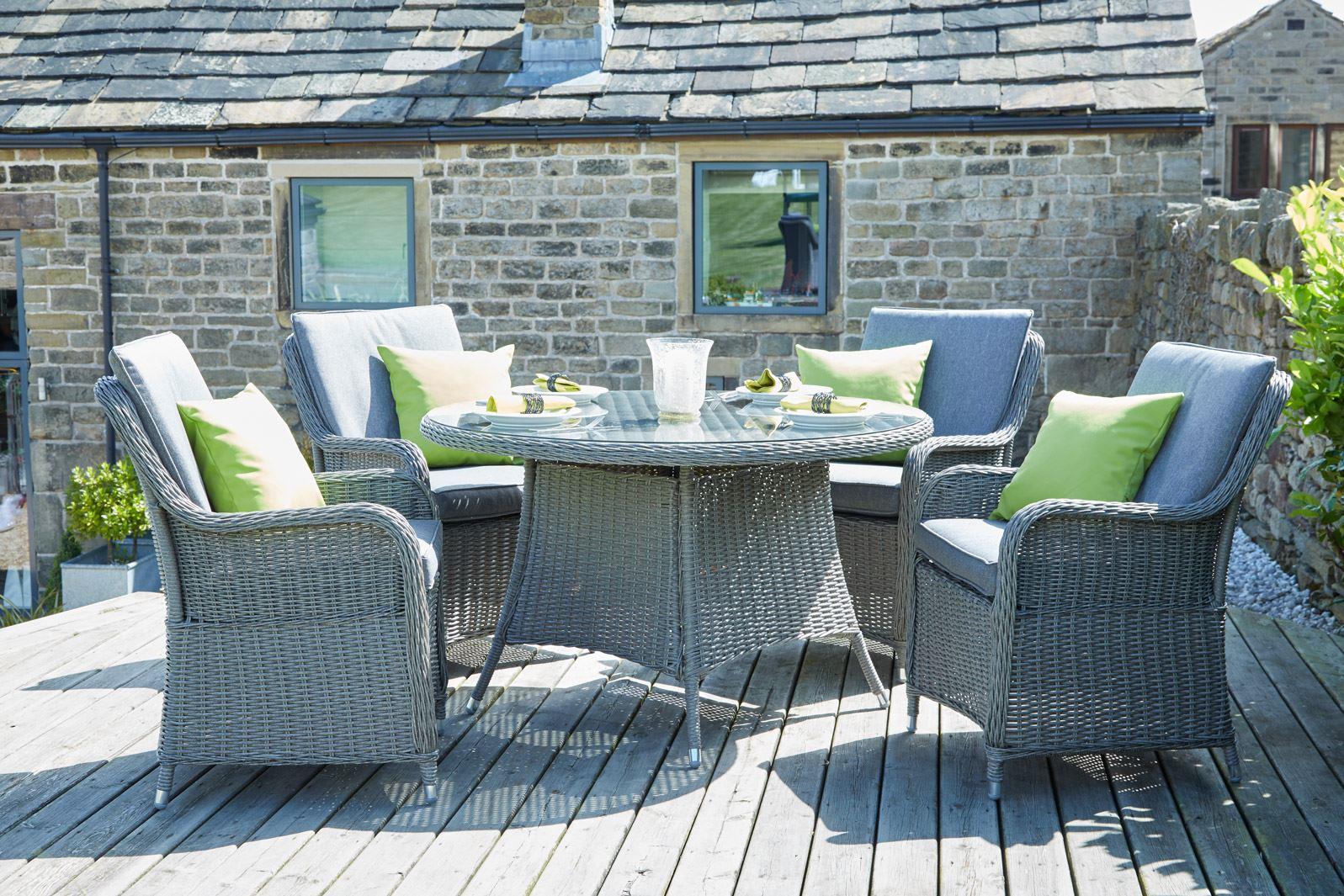 Slate Grey Barbados 4 Seater Round Dining Set