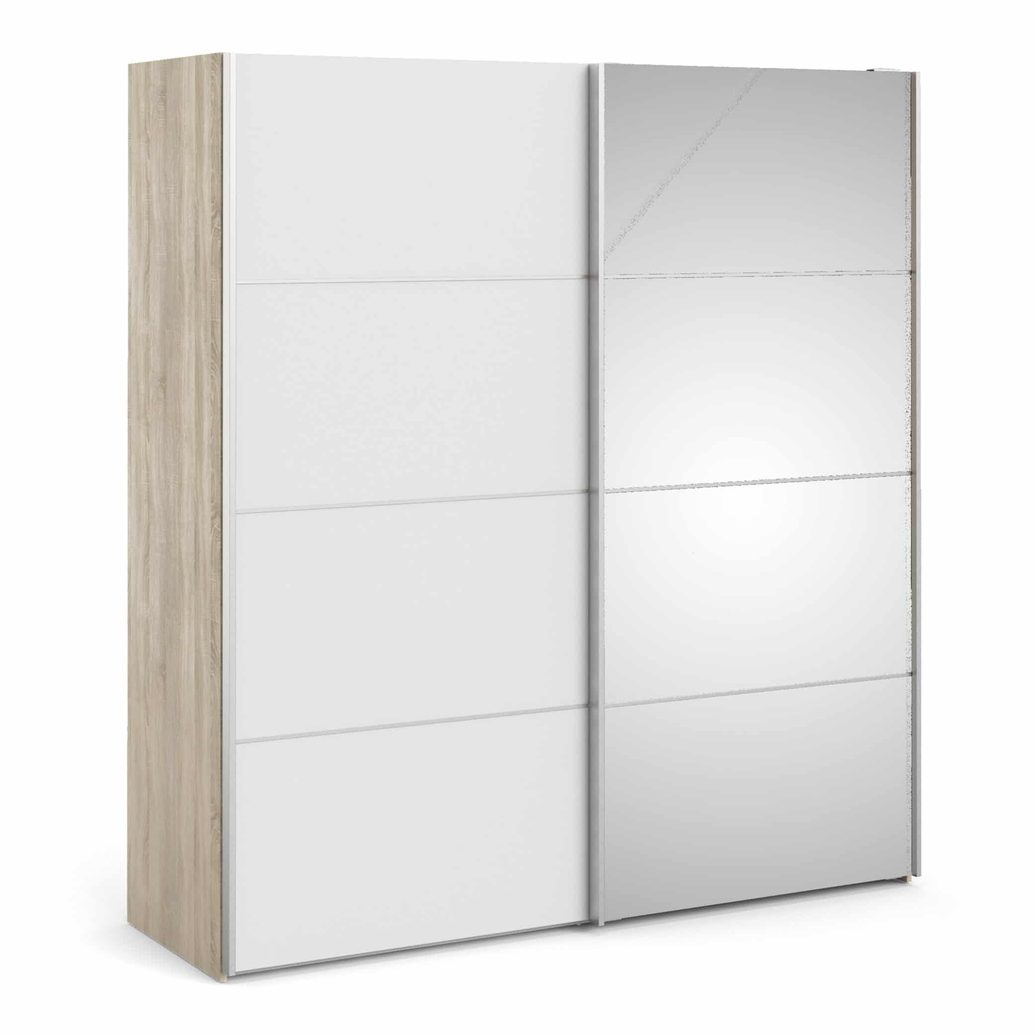 Sliding Wardrobe 180cm in Oak with White and Mirror Doors with 5 Shelves