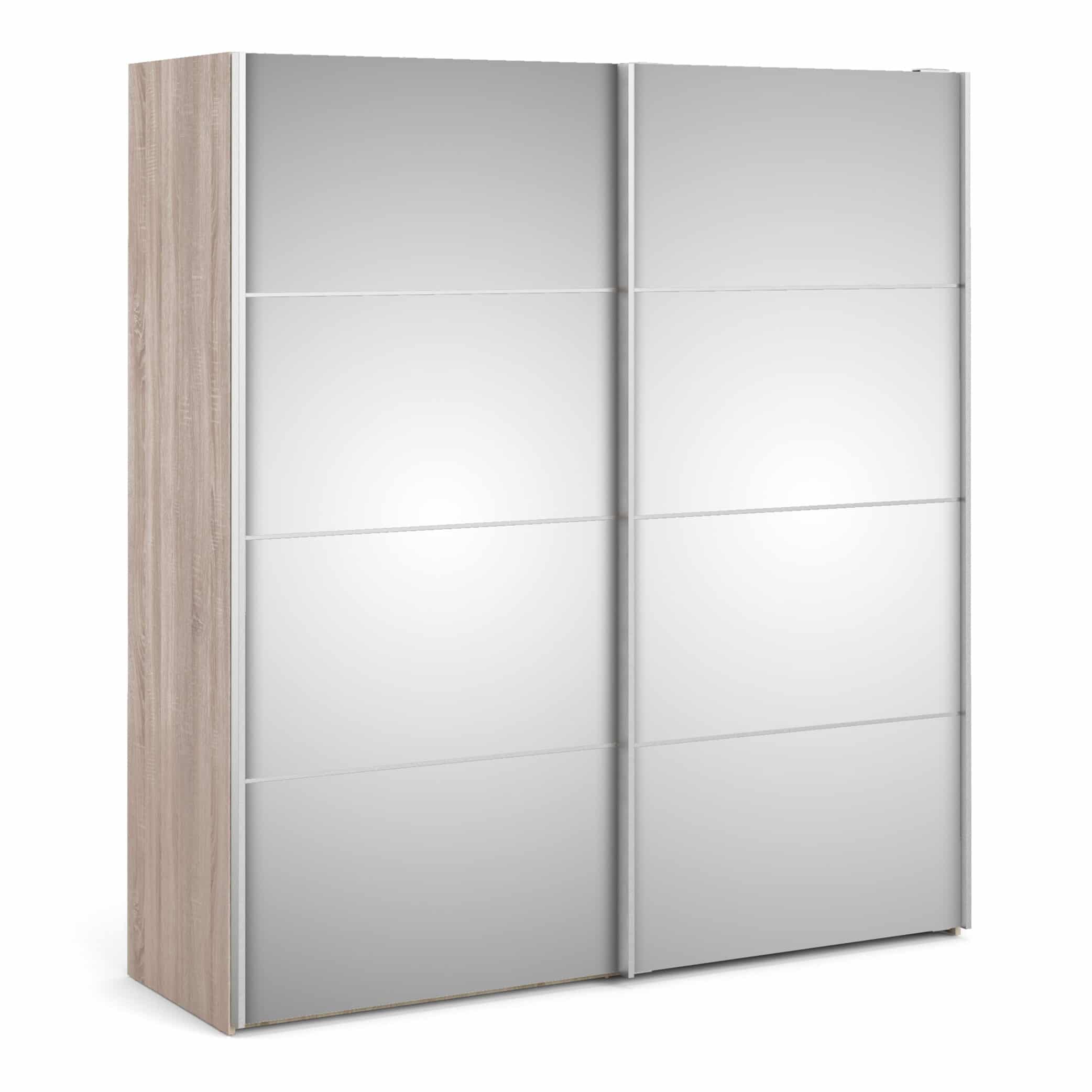 Sliding Wardrobe 180cm in Truffle Oak with Mirror Doors with 5 Shelves