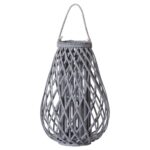 This is the Small Grey Wicker Bulbous Lantern. Add natural texture to your home with our wicker lantern range. These beautifully woven wicker lanterns have an earthy texture and on-trend grey finish that can be used to instantly add a relaxed, easy living feel to interiors. Perfect outdoors during the fine weather or bring indoors in the winter for a cosy vibe.