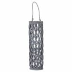 This is the Small Grey Wicker Lantern with Glass Hurricane. Add natural texture to your home with our wicker lantern range. These beautifully woven cyclindrical wicker lanterns have an earthy texture and on-trend grey finish that can be used to instantly add a relaxed, easy living feel to interiors. Perfect outdoors during the fine weather or bring indoors in the winter for a cosy vibe.
