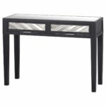 This is the Soho Black Mirror Collection 2 Drawer Console. Designed and manufactured exclusively for Hill Interiors, this collection takes our mirrored furniture offering to new heights of style and modernity. Built in black painted pine and a combination of clear and antique mirror, this item’s striking chevron pattern gives it a real wow-factor, perfect for its intended role as a room’s stand-out statement piece. We recommend hanging this item’s matching mirror (20646) above it to get the full effect. Metal ball bearing drawer runners will ensure this item’s durability in the home.