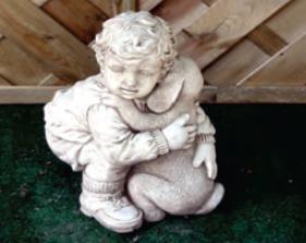 STONE GARDEN ORNAMENT STATUE BOY WITH PUPPY – CLICK & COLLECT ONLY