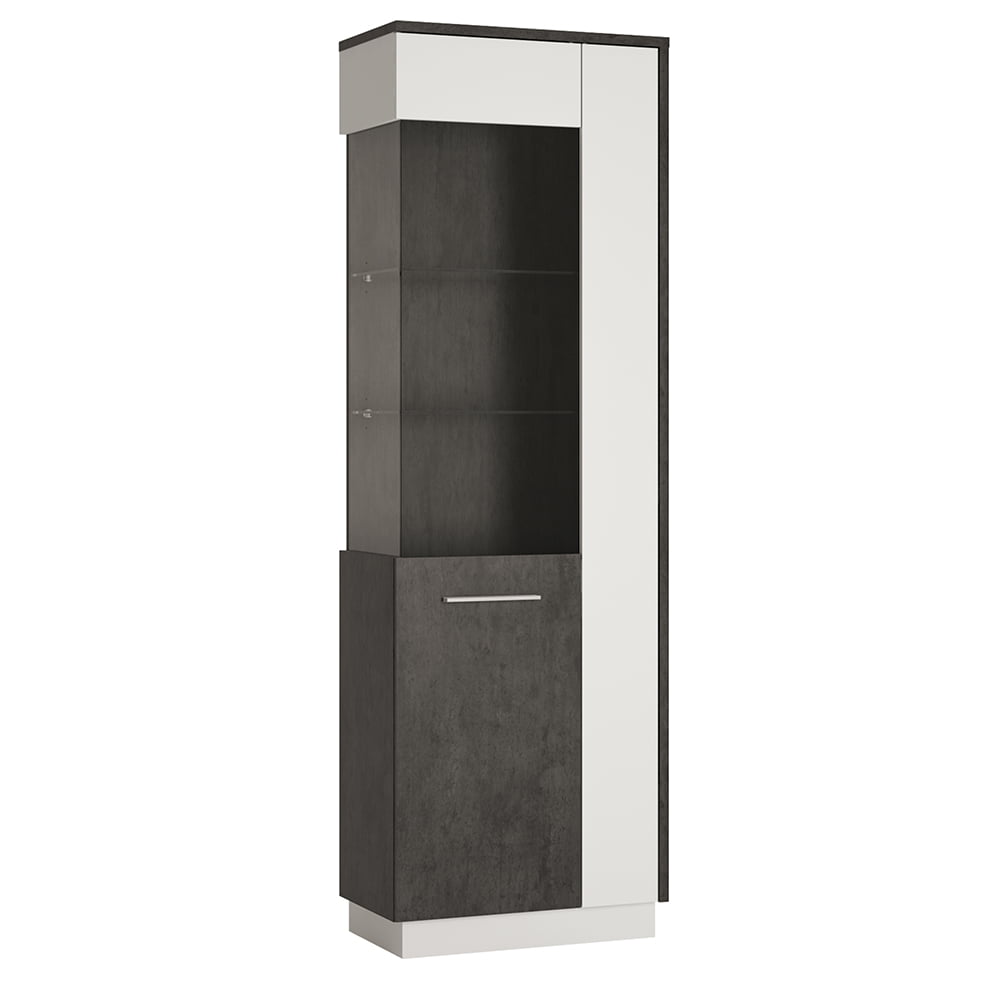 Similar to the low display cabinet, but taller! The same contrast of light and dark materials and with a much larger glazed display section this is a stunning piece which will draw attention to the items you want to show off while providing more than ample storage space for anything else.