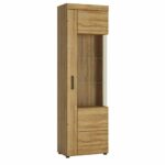 A narrow glazed display cabinet with a total of 5 shelves ? it’s great for the living room or dining room. The glazed front lets you elegantly display both home decorations and porcelain on the 2 glass shelves. For the lovers of natural wood, this range offers you the oppotunity to enjoy the charm of wooden furniture at an affordable price. Made from high quality MDF in the colour of grandson oak, which looks just like natural timber. An additional feature is the beautiful antique metal handles which gives a timeless elegance to the collection.