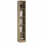 Tall Narrow Bookcase in Sonama Oak This extra tall narrow bookcase has several adjustable shelves, and can be used as bookcase, storage area for DVD?s and CD?s or display unit for your treasured ornaments. Why not add more of our matching bookcases to complete your collection.