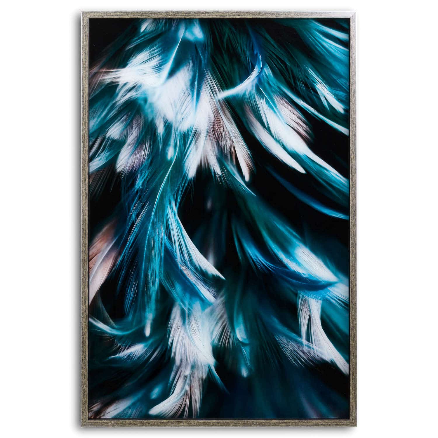 Teal Feather Glass Image In Silver Frame