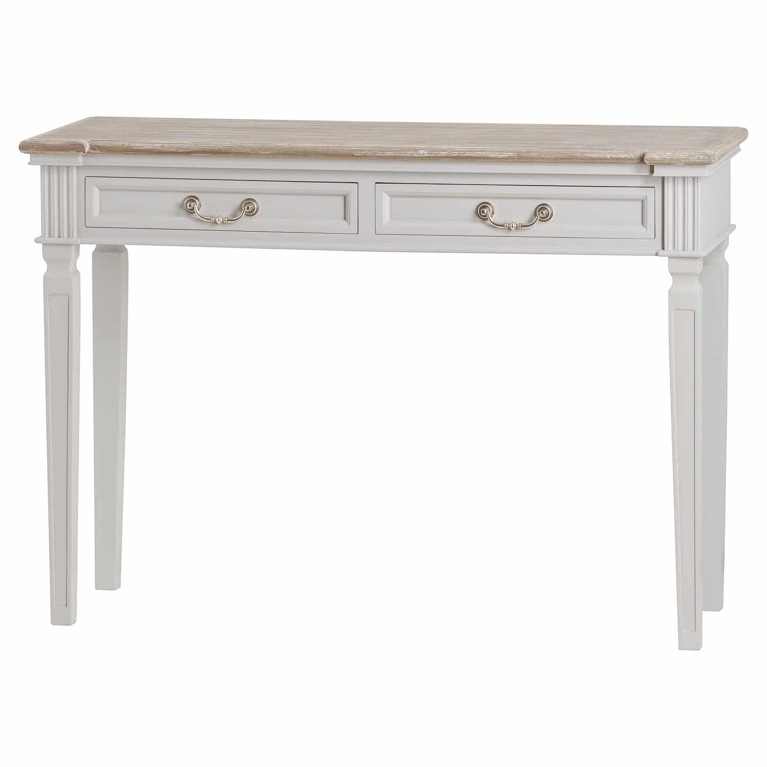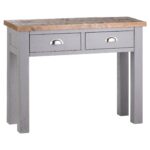 This is the two drawer console table ideal for a hallway or lounge, it features two spacious drawers with a grey wash top and off grey base. It would be ideal for many interiors thanks to the neutral colour scheme and minimal fuss designs.