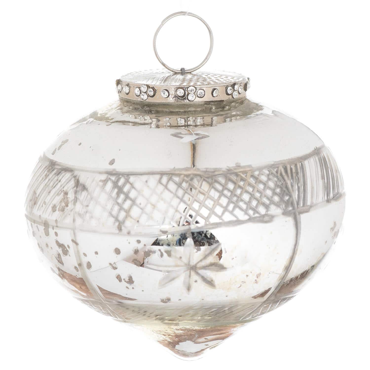 The Noel Collection Silver Jewel Top Large Teardrop Bauble