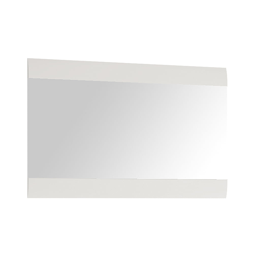 Wall Mirror 109,5 cm Wide in White. Unconventional design – a proposal for the followers of the latest trends. The clever mix of scratch resistant white melamine with beautiful high gloss fronts makes this top quality collection of furniture the ideal destination for the most modern of homes, the massive range that includes many cabinets and wall units fulfils every storage and display option.