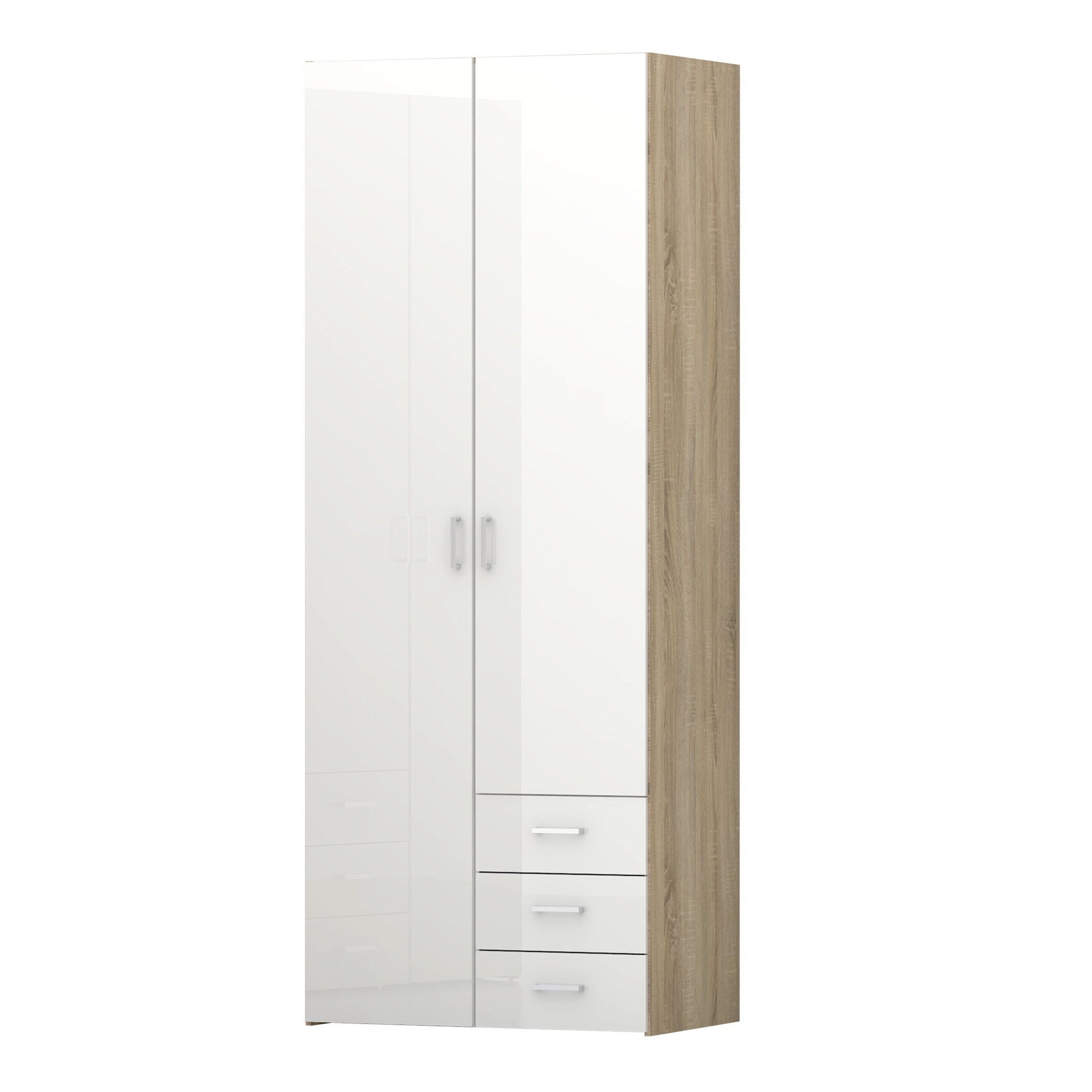Wardrobe – 2 Doors 3 Drawers in Oak with White High Gloss