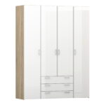 Wardrobe – 4 Doors 3 Drawers in Oak with White High Gloss