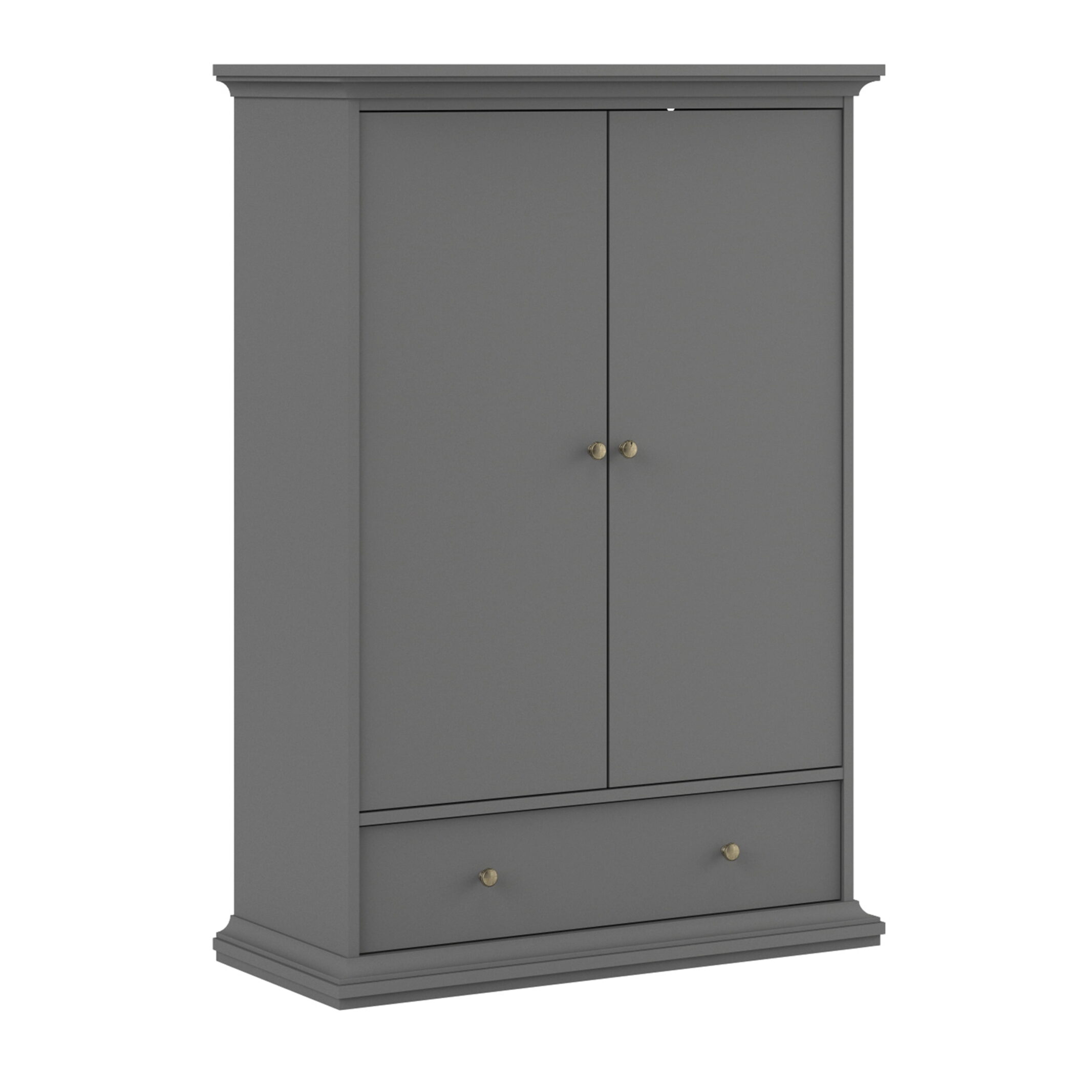 Wardrobe with 2 Doors 1 Drawer 2 Shelves in Matt Grey