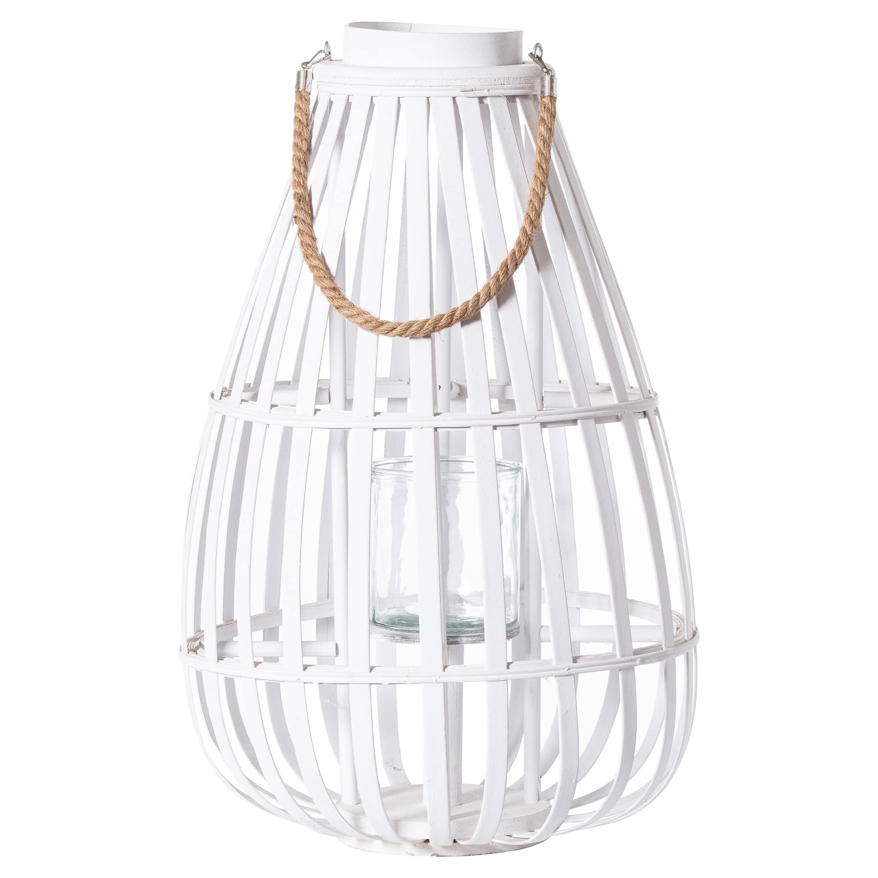 White Floor Standing Domed Wicker Lantern With Rope Detail