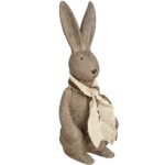 This winter bunny rabbit is part of a beautiful pair of cute winter bunnies complete with a small fabric scarf sure to be a conversation starter in any room.